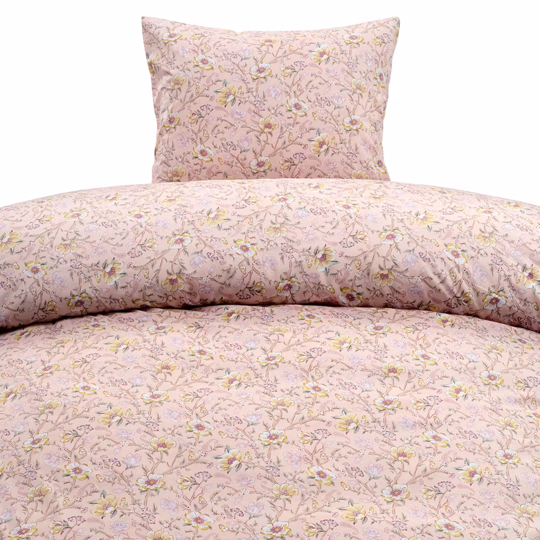 Aurora Aprikos är designat med ett elegant blommönster som skapar en lekfull men ändå sofistikerad känsla i rummet. Det lätta microfibertyget gör bäddsetet behagligt mot huden och ger en följsam och mjuk känsla när du kryper ner i sängen.