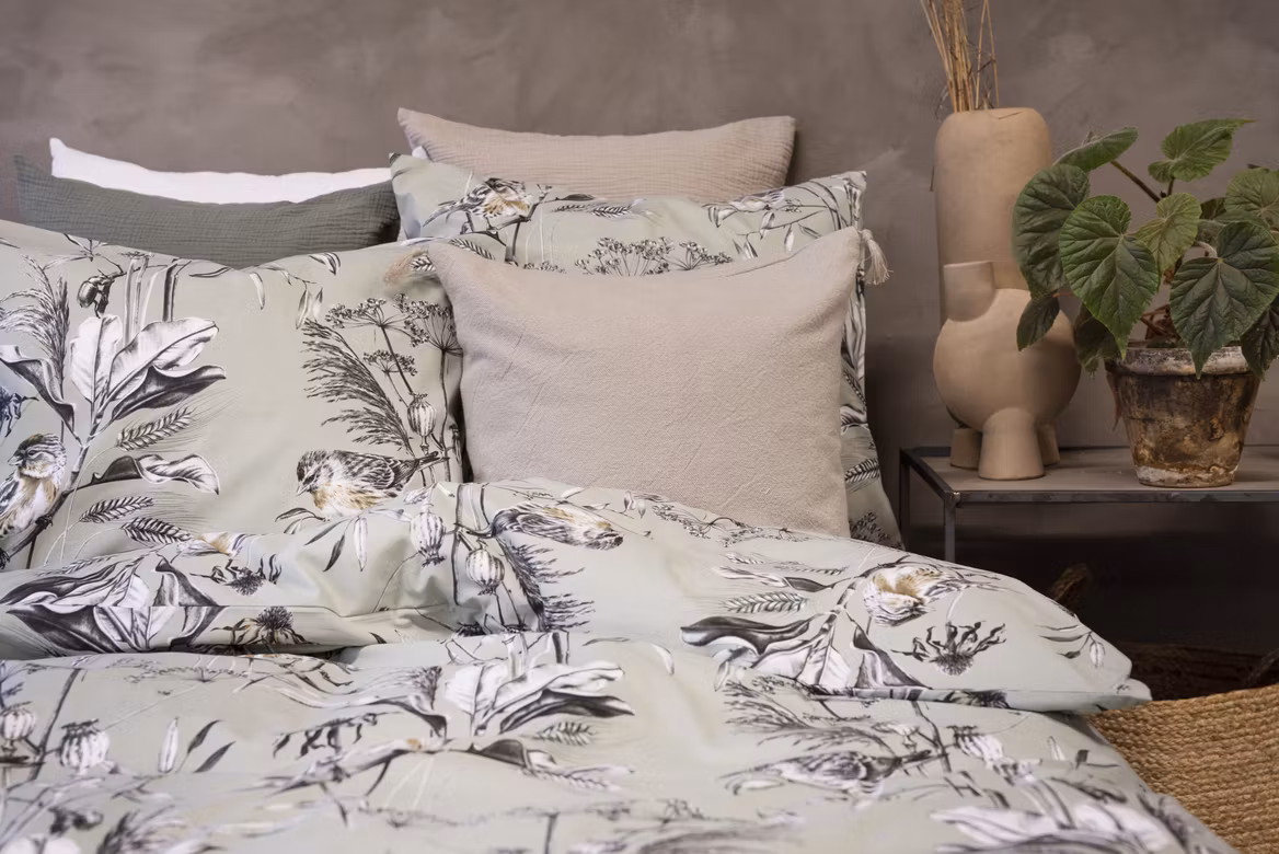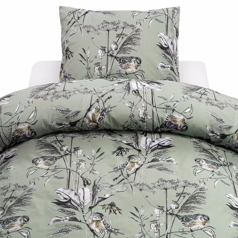 Detta bäddset kombinerar komfort, kvalitet och naturinspirerad design, vilket gör varje natt till en fridfull dröm bland grönska och fågelsång.
