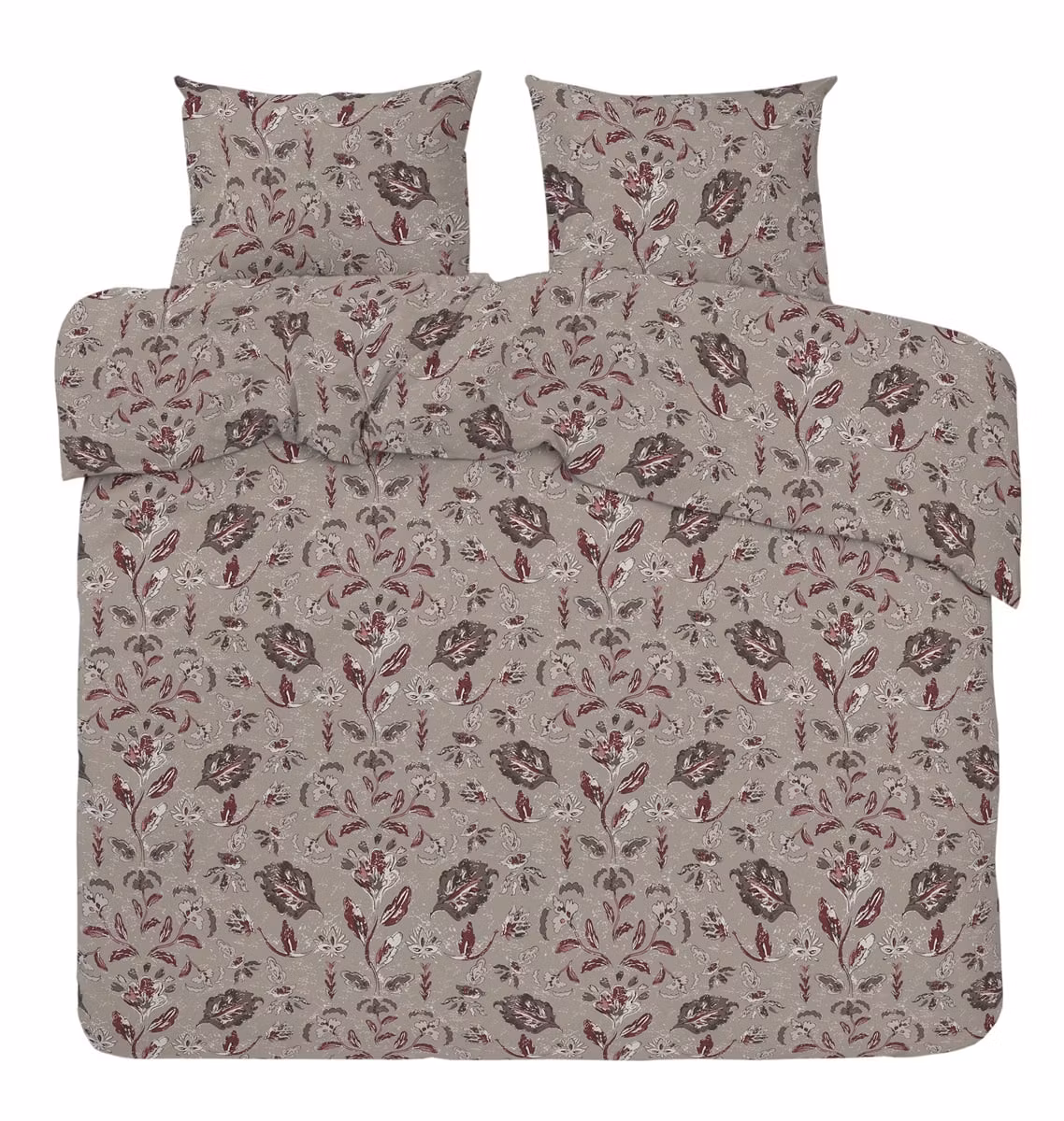 Mönstret i mullvads- och vinröda toner med subtila botaniska inslag ger en varm, elegant och ombonad känsla. Perfekt för dig som vill kombinera klassisk design med modern elegans och hög komfort.
