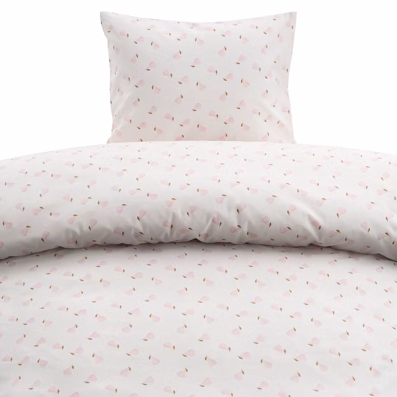 Päron Rosa bäddset i mjuk bomull med lekfullt päronmönster. Skapar en fräsch, harmonisk och inbjudande känsla i sovrummet. Perfekt för enkelsäng.