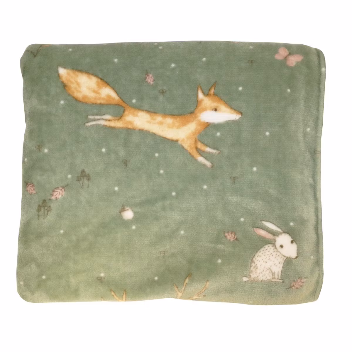 Stampe Grön Pläd – mjuk och mysig fleecepläd i 100 % polyester med sött djurmönster. Perfekt för barnrummet och kyliga kvällar.