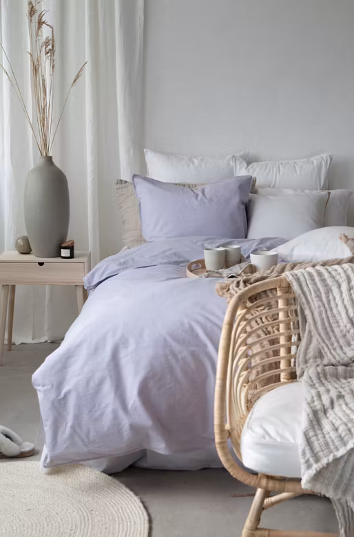 Med sin tvättade vintage-look och dubbla kantsömmar erbjuder Washed-serien en modern, levande struktur som gör bäddningen både trendig och personlig. Den dämpade lila nyansen tillför en lugn och harmonisk ton till rummet – perfekt för en avslappnad atmosfär.