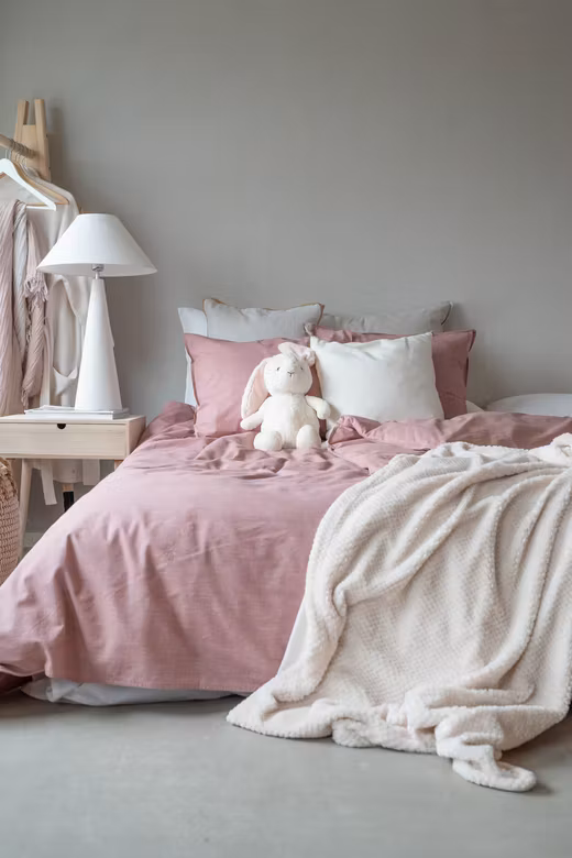 Ge ditt sovrum en känsla av lugn, värme och stil med Washed Rosa Bäddset från Borganäs of Sweden.